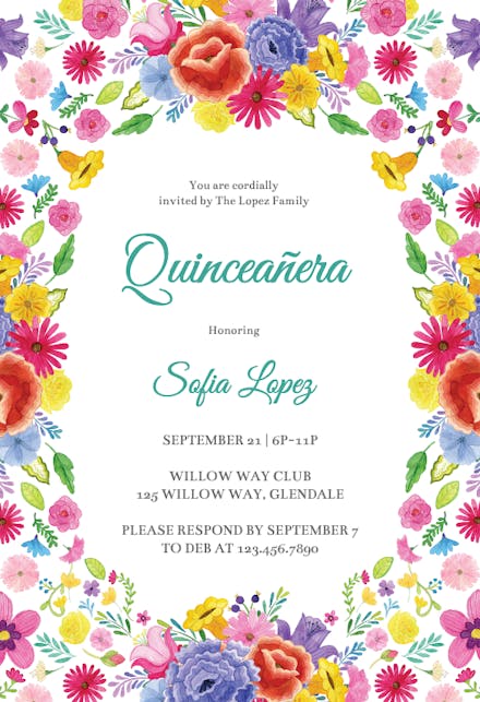 Having the special people in your life share your milestone moment starts with an invitation, and we’re happy to make that an easy part of your plans. Your quinceañera day will be a day you remember always, and we wish you lovely dances and all the smiles you can smile!