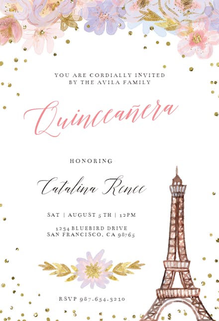 If your celebration is very informal and nontraditional, an online invite can be considered, but, similar to a wedding, a quinceañera is a unique and momentous occasion and generally calls for a printed invitation. The invitation is also one of the most meaningful keepsakes for a quince memory album or treasure box.